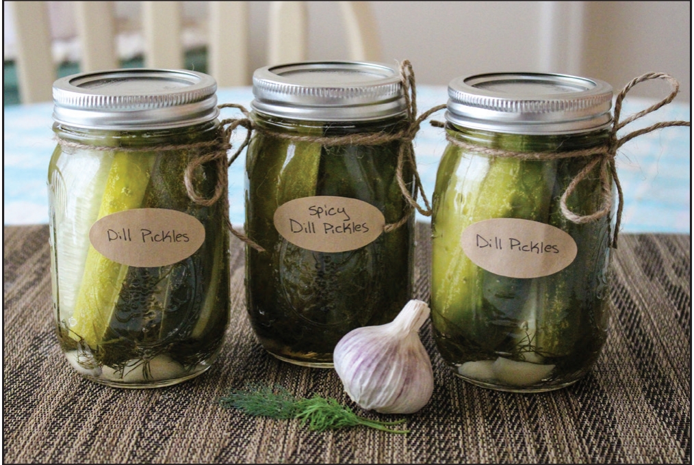 Pickling adds vinegar (acetic acid) to lower pH in fresh pack pickles and other acidified foods. Process in boiling water canner or refrigerate for longer storage.