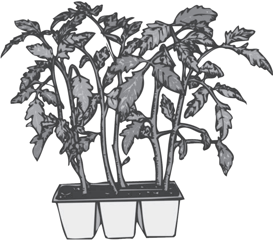 Tomato plants must be started indoors and then transplanted outside. Plants are started indoors eight weeks before the danger of frost is past. Enough plants for a garden may be started in a window box and transplanted to small pots or paper cups. Seedlings are first transplanted soon after their first true leaves appear. After the danger of frost is past and there is assurance of continued warm weather, tomatoes are again transplanted — this time into the garden, if you are going to grow them outside.