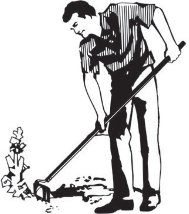 Spade to a depth of 6 to 8 inches. Several small shovelfuls are better than one large one. Each shovelful must be completely turned over and broken up. Since raking only smooths the surface, all breaking must be done with the spade.