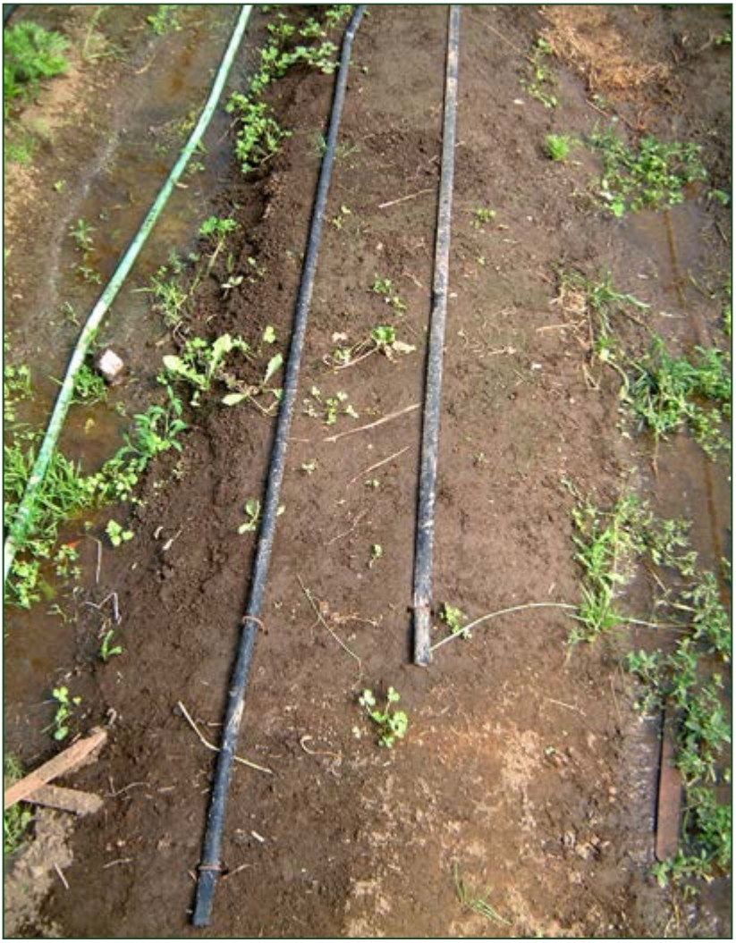 Drip systems. Drip irrigation systems might consist of individual capillary tubes for each pot or drip tape for ground beds. Drip irrigation uses water efficiently and keeps areas with no plants dry so that you can work around plants while they are being watered. Drip systems should be monitored to be sure they are maintained and working correctly to keep the water flowing from emitters. Drip systems are relatively easy to assemble, but they do take more time to set up than most of the other watering systems. This is especially true when individual drip emitters are installed in a large number of pots.