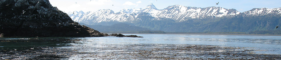 On the southern side of Kachemak Bay, where the laboratory is located, marine water influence from the Gulf of Alaska provides cold, nutrient-rich waters that sustain an abundance of rich nearshore ecosystem types—kelp beds, seagrass systems and tidal-flat communities—as well as the pelagic system and deeper waters of Kachemak Bay. The large tidal range in Kachemak Bay (up to 30 feet) exposes many of these nearshore systems on a daily basis and allows their exploration for research, education or recreation. The head and northern shore of Kachemak Bay are strongly influenced by the glacial outflow of the Harding Icefield, creating a more brackish environment that adds to the overall biodiversity and heterogeneity of the bay.