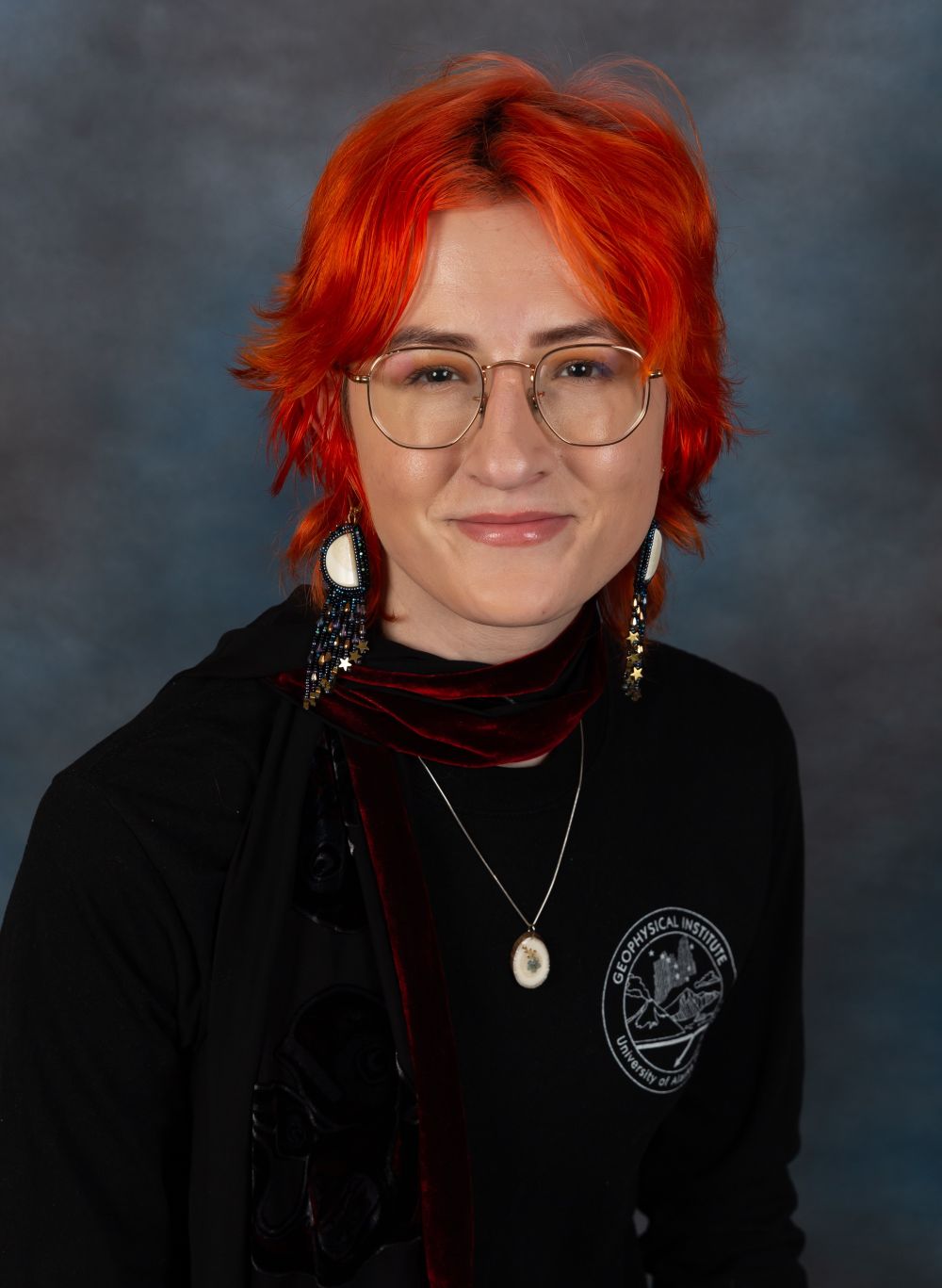 Vivian Palmer is an undergraduate majoring in Physics, with a particular interest in Space Physics. Originally from rural Pennsylvania, they moved to Alaska in 2022 with the intent of studying physics under the aurora borealis. Currently, they hold a student research position at the Geophysical Institute researching the presence of Field Line Resonances in Jupiter’s magnetosphere using Juno spacecraft data under Dr. Peter Damiano and Dr. Peter Delamere. When they are not studying physics, they also study Yup’ik Language and Culture, as well as other associated Alaska Native Studies. They are involved in AISES, Yugtun Egmilta (Yup’ik Club), and the Iñu-Yupiaq Dance Group. They are also known by their Yup’ik name, “Mayuraq”. Outside of the university, they enjoy beading, fur-sewing, and being outdoors.