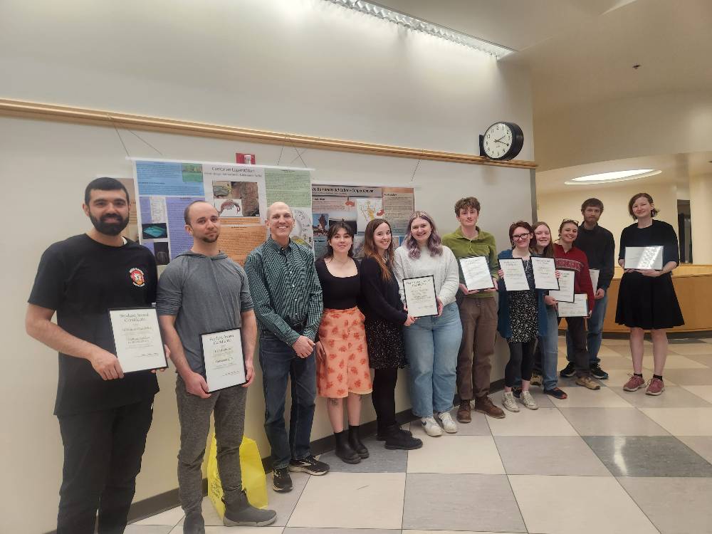 Left -right: Ali Moazezi Ghavihelm, Daniel Fabrizio, Bill Simpson, Sydney Wade, Mars Brennan, Ryan Owens, Iva Thomason, Ainsley Sauer, Hannah Hausmann, Owen White, Klara Gengler Chemistry & Biochemistry Award Recipients |