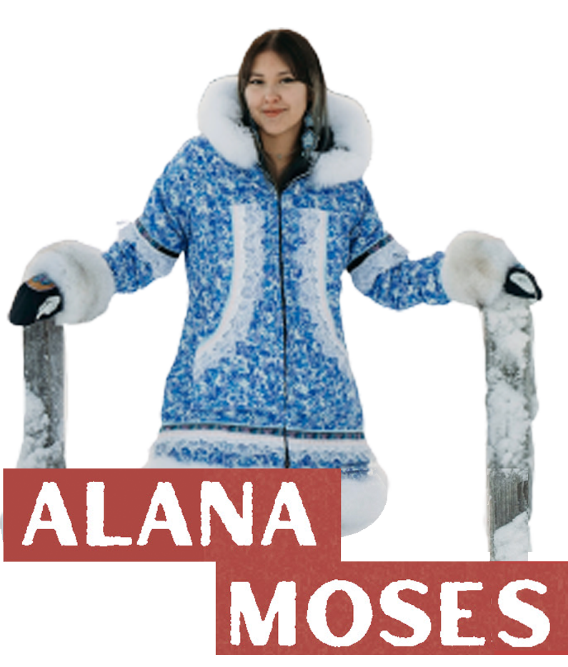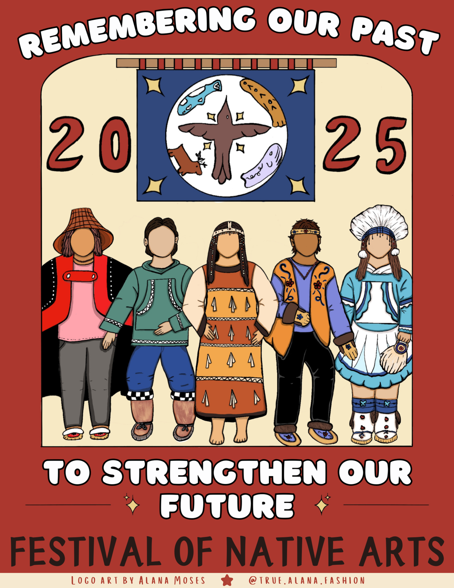 Alana Moses from Fairbanks, Alaska, is the 2025 Festival of Native Arts (FNA) Booklet Cover Artist. She is eighteen years old and currently in her second year of taking classes on the Troth Yeddha’ Campus at UAF. Alana is Yup’ik, Cup’ik, Inupiaq, and Koyukon Athabascan, with family from Alatna, Allakaket, and Hooper Bay.
