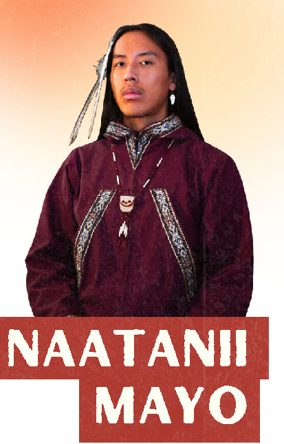 “My name is Naatanii Mayo, I am from Stevens Village but I currently live in Fairbanks. I am Bitterwater Clan for the Tl’eeyegge hʉt’aane.”
