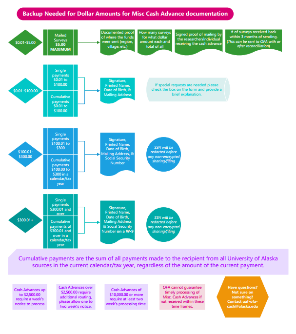 - Please see the flowchart below for what information is required based on dollar amount.