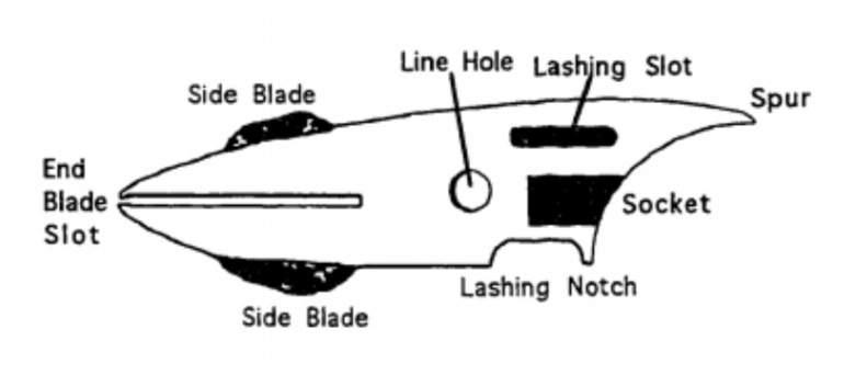 Figure 1: Shows the morphological attributes used to determine harpoon head type (Lewis, 1996).