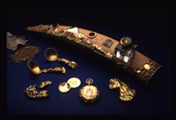 The Geology Collection includes minerals and gems from Alaska and around the world. It houses placer gold fines and nuggets, including spectacular native gold specimens on display as part of the C. J. Berry Gold Exhibit - the largest gold nugget exhibit in the state. The collection has a variety of examples of metamorphic, igneous, and sedimentary rocks documenting the fascinating geologic history of Alaska. The Geology Collection also has out-of-this-world specimens, such as meteorites and tektites, collected within Alaska and elsewhere.