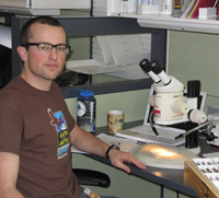 Joey Slowik began work as a graduate student in the MS program in the Fall of 2008. He worked as a curatorial assistant in the Arachnid Collection under Dr. Paula Cushing of the Denver Museum of Nature and Science from 2004-2007. Joey's focus is on spider taxonomy, life history, faunistics, and phylogeny, specifically the spider families Linyphiidae and Lycosidae. Joey completed his MS degree on a species group in the genus Pardosa in the summer of 2011. This resulted in two publications - one that synonymized four species and one on molecular phylogenetics. Joey continues to work on Alaska spiders in collaboration with projects at UAM and now works for UAF Cooperative Extension.