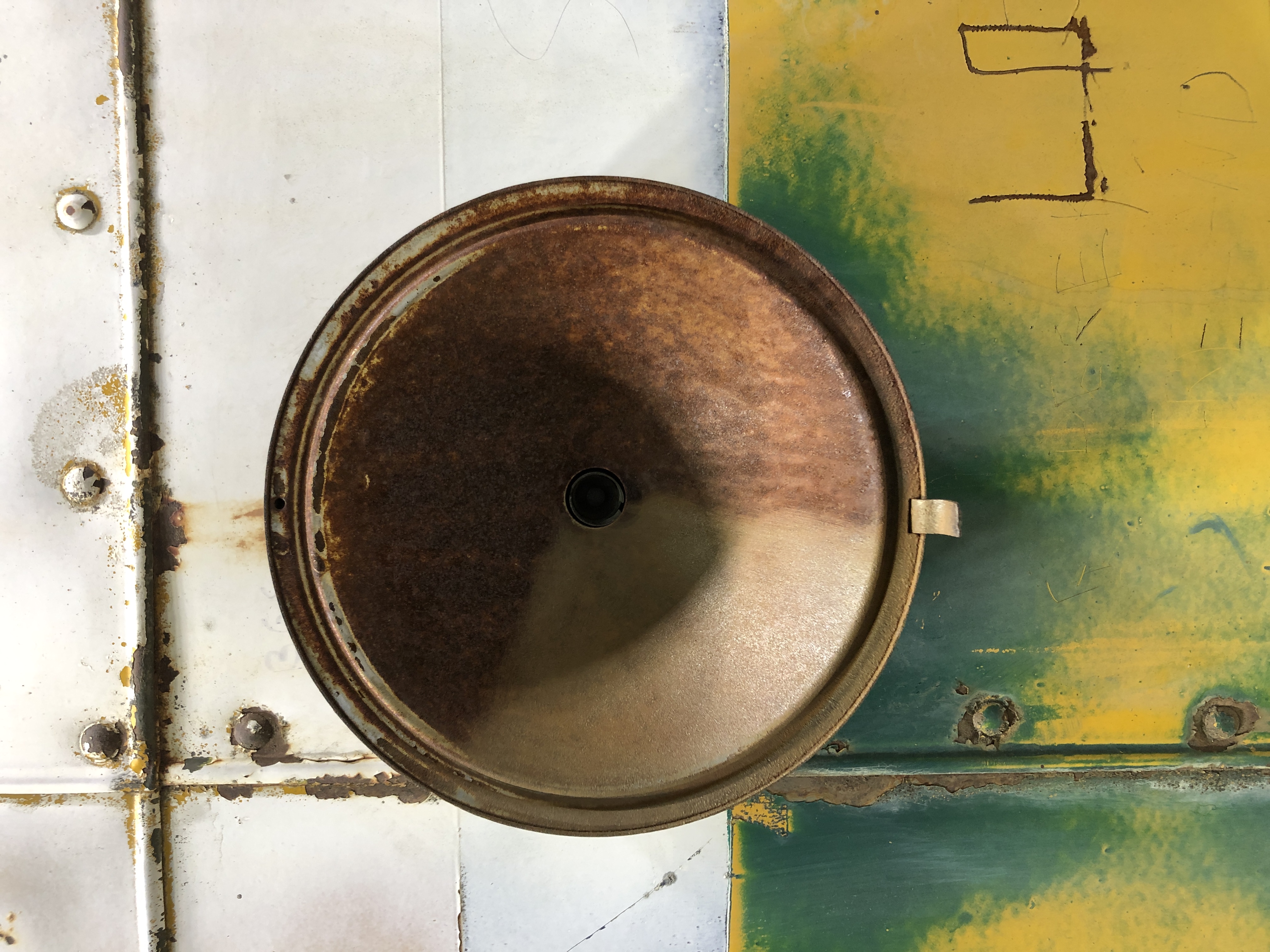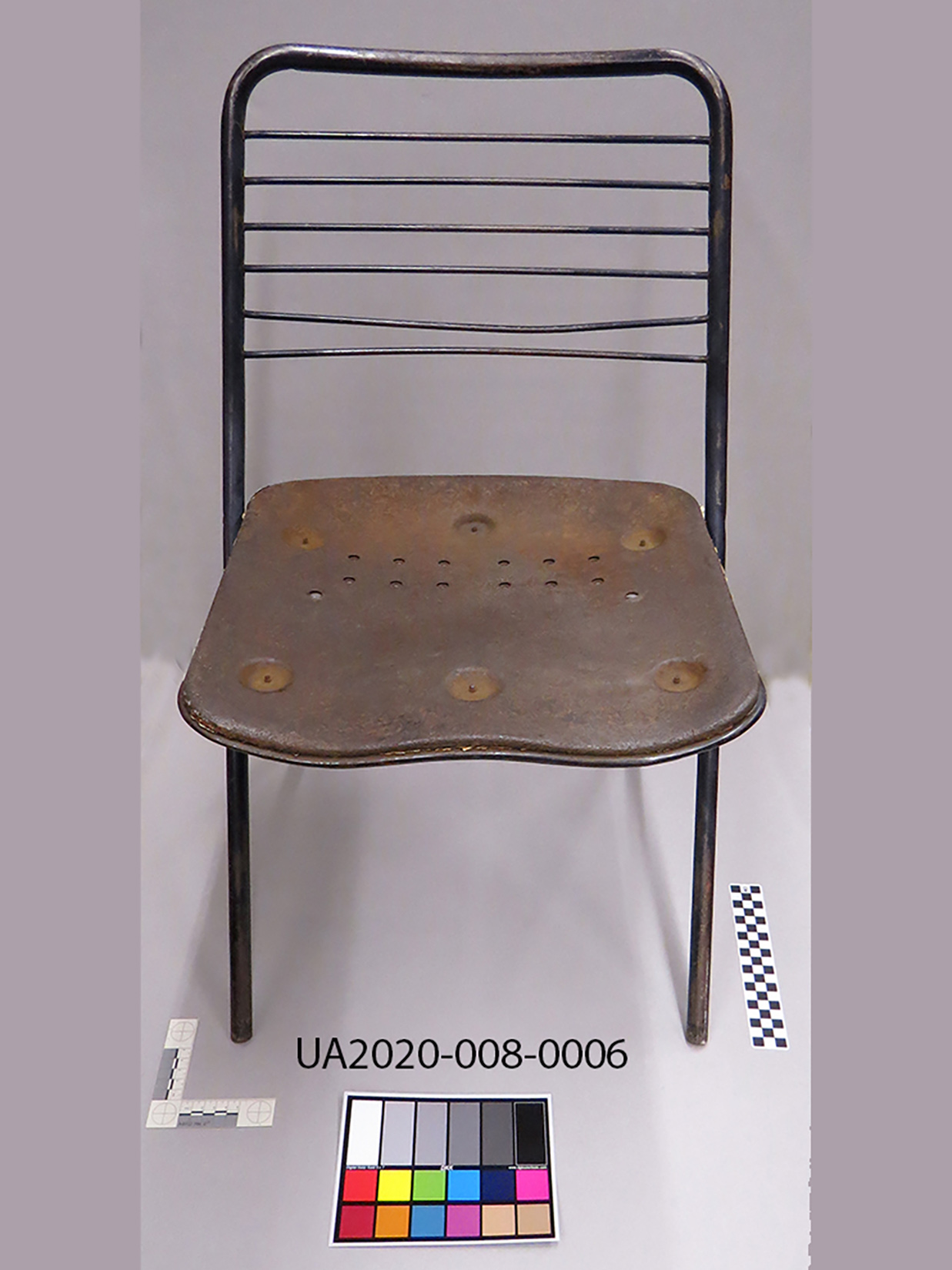 As a result of years of use and precipitation, the bottom entry step was heavily damaged and had a large hole. The step was constructed of two layers: a base of steel and a textured tread plate. For safety, the step was removed and a replica of the steel base was fabricated by Facilities Services and installed by the conservation team. The original tread plate was repaired with fiberglass and reinstalled on top of the new stabilized step, preserving the original appearance of the step while ensuring safety and stability for future visitors. The original steel base step was cataloged into the museum collection. |