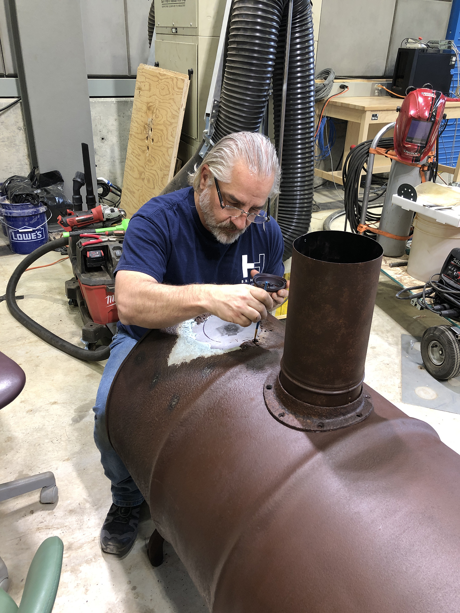 Conservators managed and reduced the active corrosion using hand tools. Appropriate treatments were determined to include Paraloid B-48N and B-72.