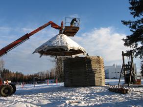 On Friday, November 5, 2010 the Kolmakovsky blockhouse had its roof removed all in one piece. This impressive bit of rigging occurred over several hours, on a beautiful clear day.