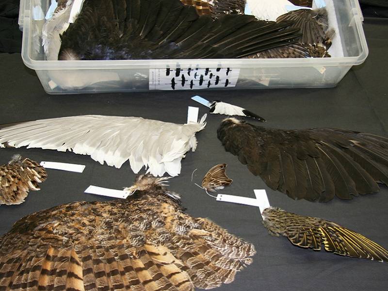 33 spread bird wings (from 31 different bird specimens)
