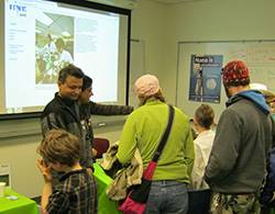 Image: Graduate student Thomas Ferrugia sharing his research during Fish Family Day, 2013.