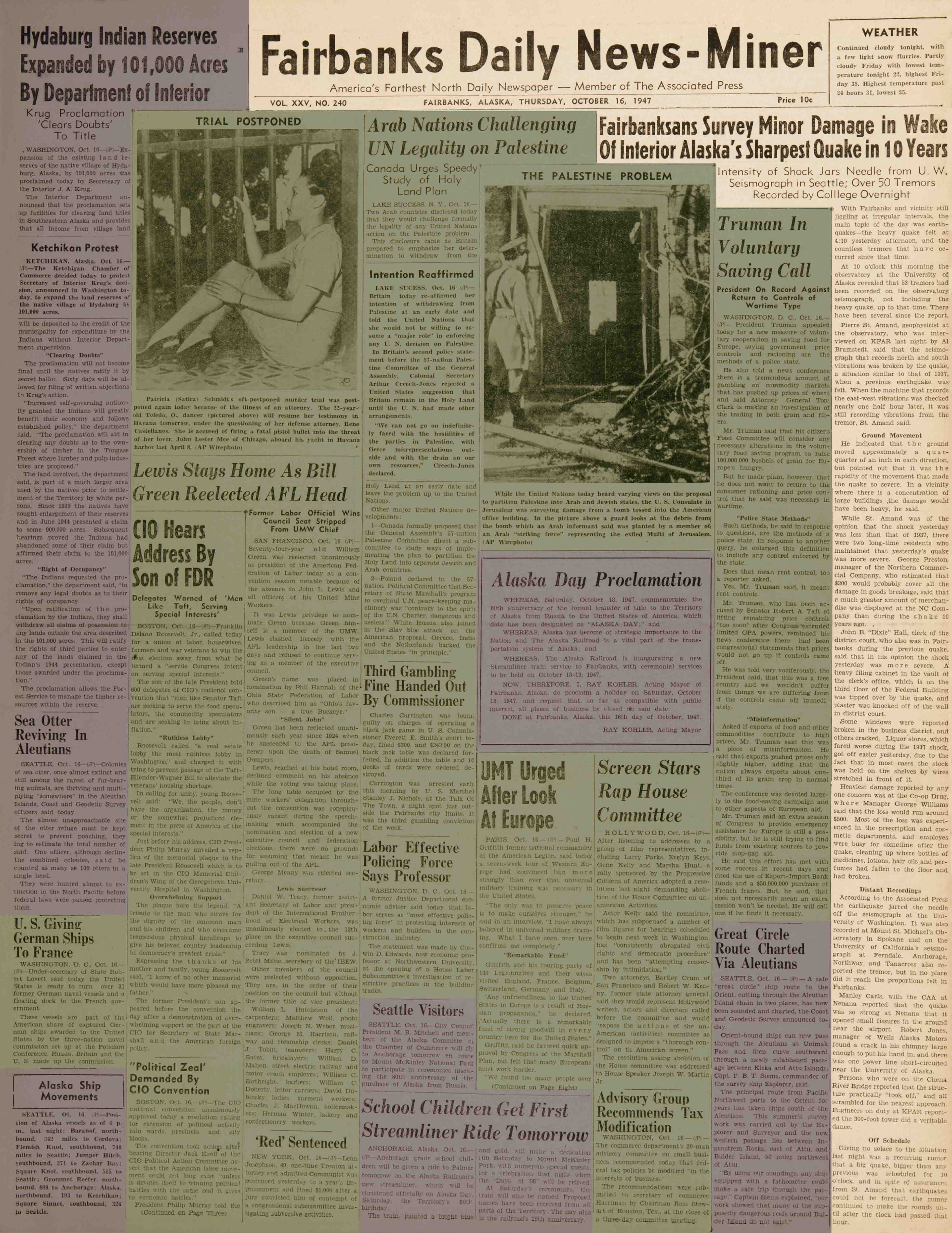 1947 October 16, Fairbanks Daily News-Miner (pg 1)