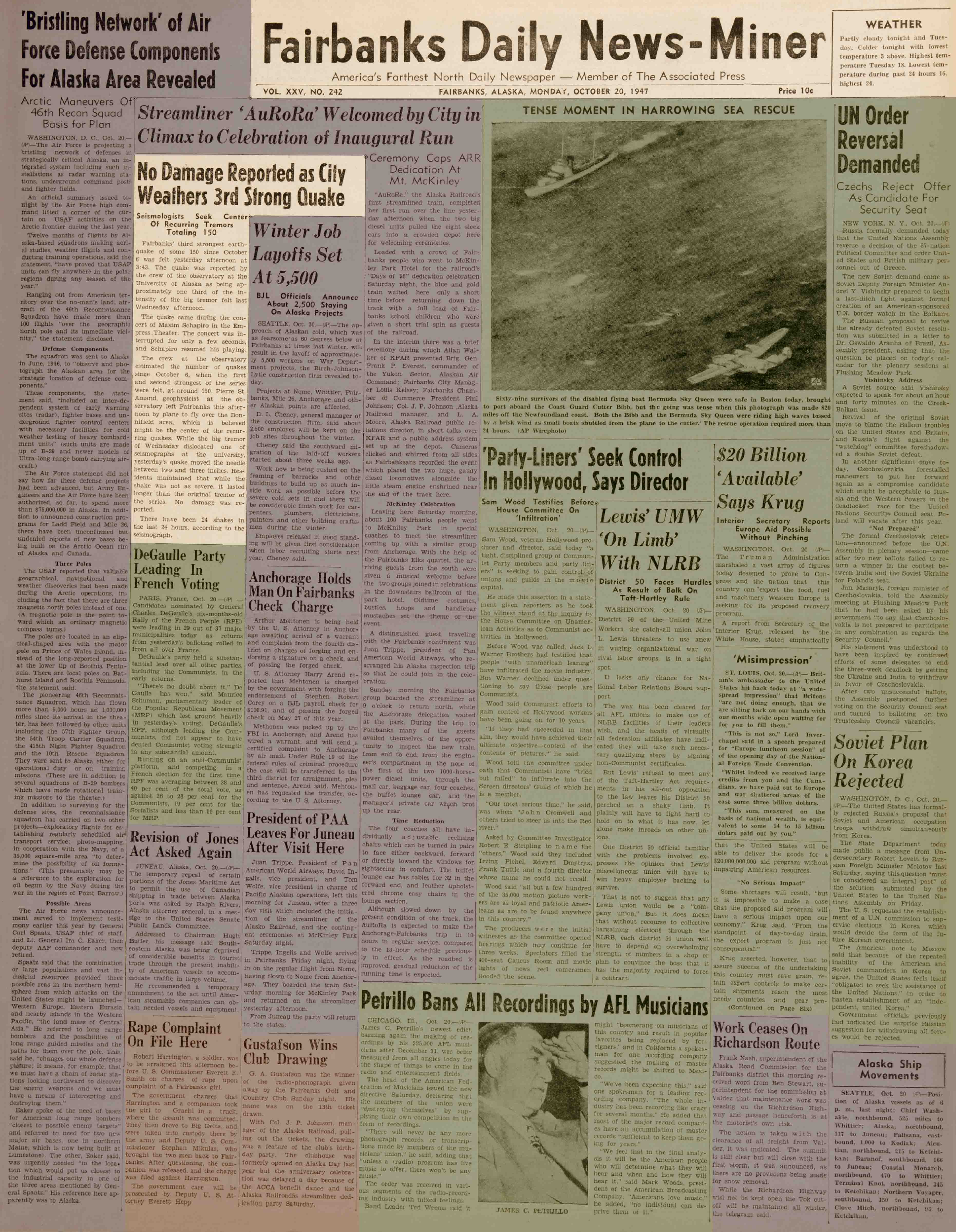 1947 October 20, Fairbanks Daily News-Miner (pg 1)