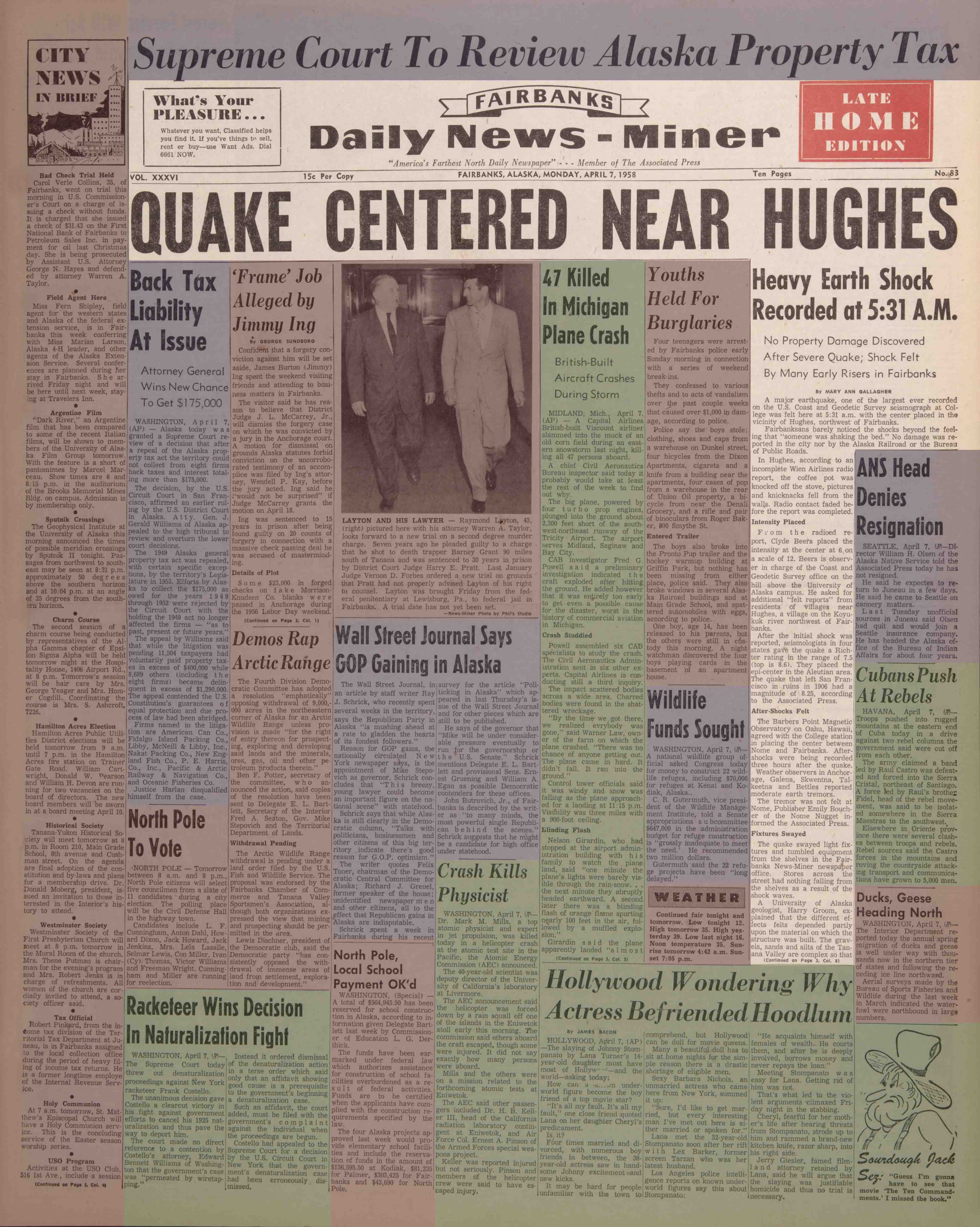 1958 April 7, Fairbanks Daily News-Miner (pg 1)1/4