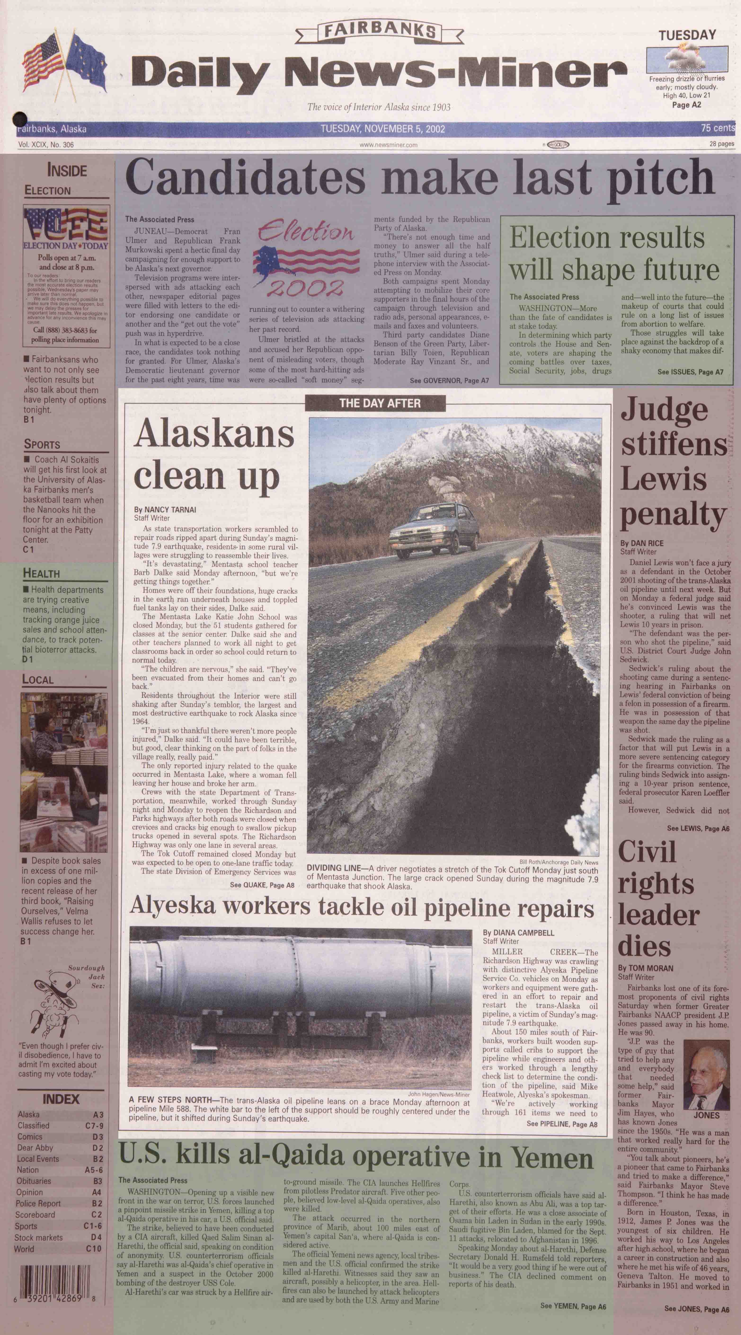 2002 November 5, Fairbanks Daily News-Miner (pg 1)
