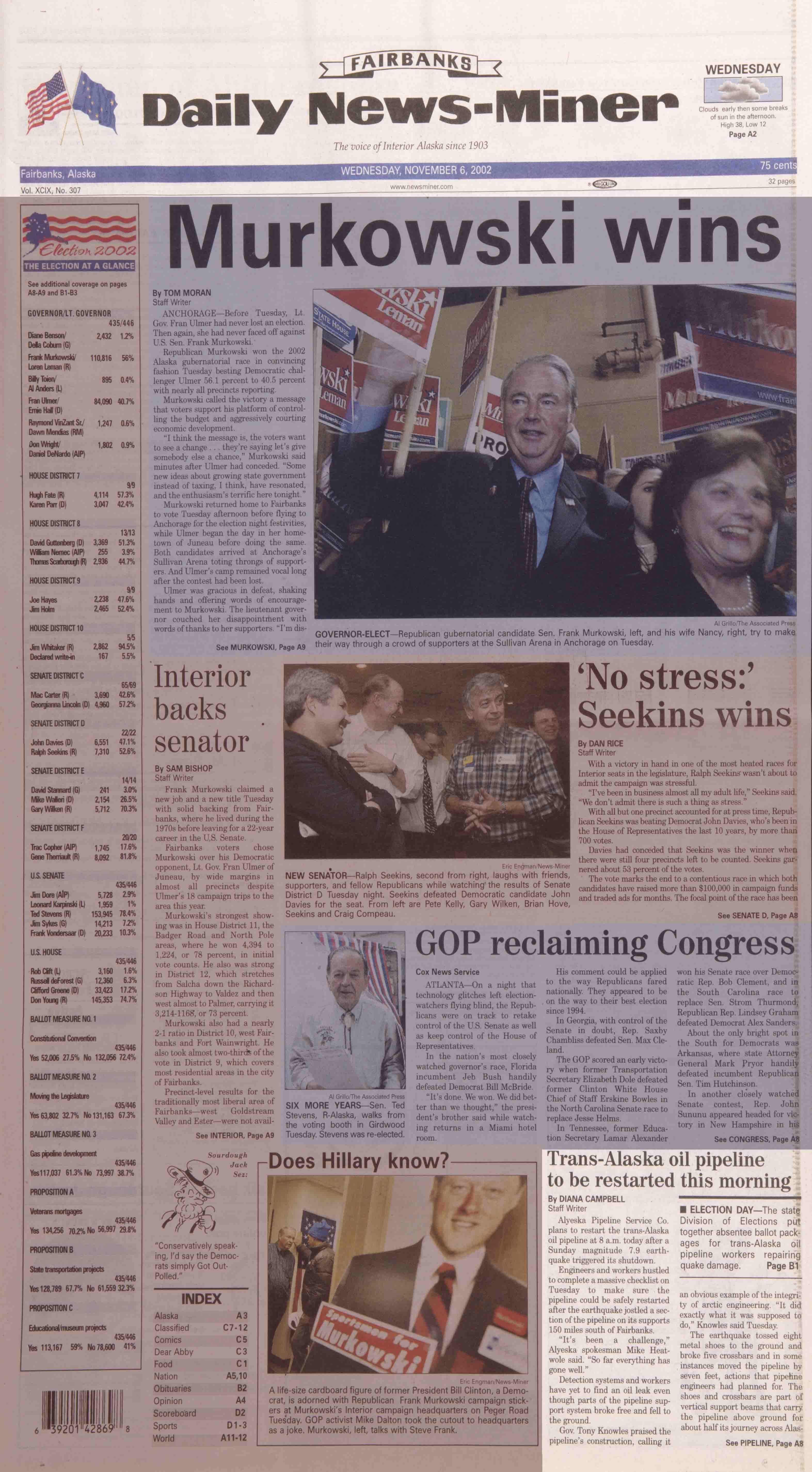 2002 November 6, Fairbanks Daily News-Miner (pg 1)