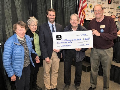 Thanks to the generosity of many Fairbanks and Interior residents, Museum Director Pat Druckenmiller received a second $5,000 check from the successful community match challenge grant offered by the Friends of the UA Museum of the North Ron Inouye and Betsy Sturm.