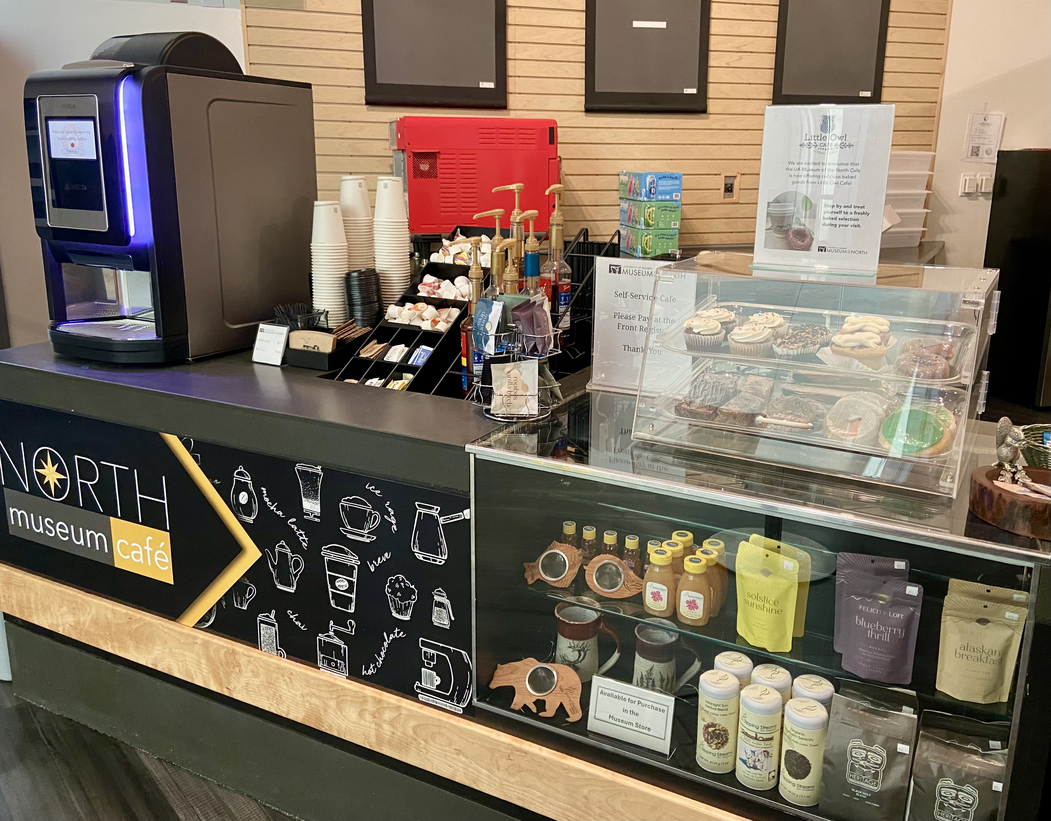 Fuel your visit to UAMN! Enjoy a hot or cold drink, baked goods, snacks or lunch items from North Museum Café. Featuring locally made goods form Little Owl and Bun on the Run. Recharge in the café or enjoy our grand lobby window seating.