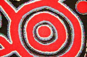 French says the petroglyph featured in the beaded collar came from a book of images, this one from Baranof Island. “I realized after I appliqu»d it to the first layer of Melton cloth, I had used the pattern upside down.” She’s made three other collars with this same pattern, so this mistake made her laugh. She was very careful that it didn't happen with the other three collars. “Now it is one of the little mistakes that make the collar more human. It adds to its story.”