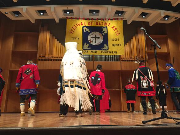 This particular robe was made by Teri Rofkar, a Tlingit of the Raven Clan from the Snail House. It is one of many objects on display at the University of Alaska Museum of the North created by the descendants of the state’s traditional cultures.
