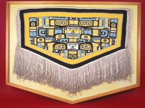 If you explore the galleries in this way, you are sure to discover another example of symmetrical traditional weaving, a Chilkat robe. These were worn during ceremonial occasions, such as potlatches, and made from mountain goat wool and shredded cedar bark with a twining technique.