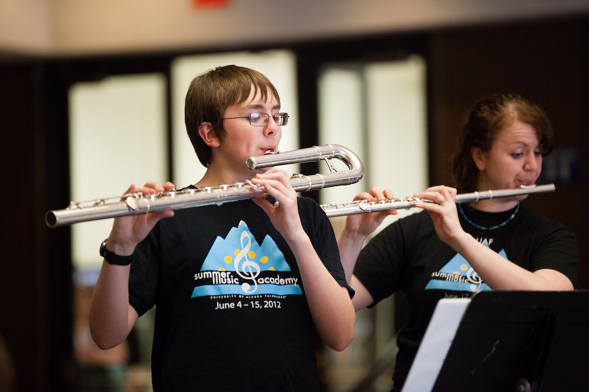 The UAF Summer Music Academy seeks to provide a quality music educational experience for students who have completed grades 5 –12. It seeks to recruit and retain music students for the UAF Department of Music through educational experiences with UAF Music Faculty, Alumni and Guest Artists. All students of the appropriate age and musical experience are welcomed at the UAF Summer Music Academy regardless of race, religion, gender, or culture. We recognize that each student has a unique style and pace of learning, and we seek to provide opportunities for students to learn in their own style and at their own pace while fitting into the larger musical community.