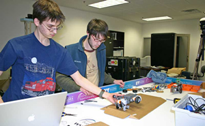 Today, the entire project operates on a 4- by-8 foot, bilevel board with two Sony cameras that stream live images of the three robots. Two Parallax Boe-Bot robots, named OLD and NEW, pick up and move objects while a Lego NXT2 device, called NXT, is configured as a forklift. Mercer says that users who have operated the devices have commented that the experience is comparable to driver’s training for Mars Exploration rover operators.
