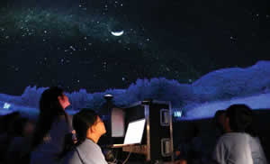 The digital portable planetarium, purchased by UAF in 2007 with funding from BP and ConocoPhillips, is key to the science outreach program. The Digital STARLAB projection system and its 4-meter and 6-meter diameter domes can be easily transported as checked luggage or by small plane to more remote communities and set up in venues ranging from school gymnasiums to small community centers. It is the only system of its type in Alaska.