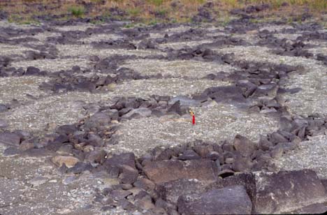 Sorted polygons approximately 0.5m across north of DenaliHighway, Alaska. Rocks and boulders (dark) form the outline forpolygonal-shaped domains of sand and gravel (light), which develop viaself-organization by repeated freezing and thawing.