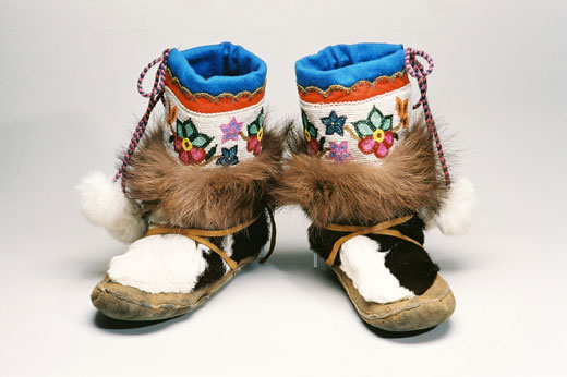 Beautifully decorated Alaska Native tools, clothing and other objects made for utilitarian purposes, such as Athabascan boots, are included in the new gallery.