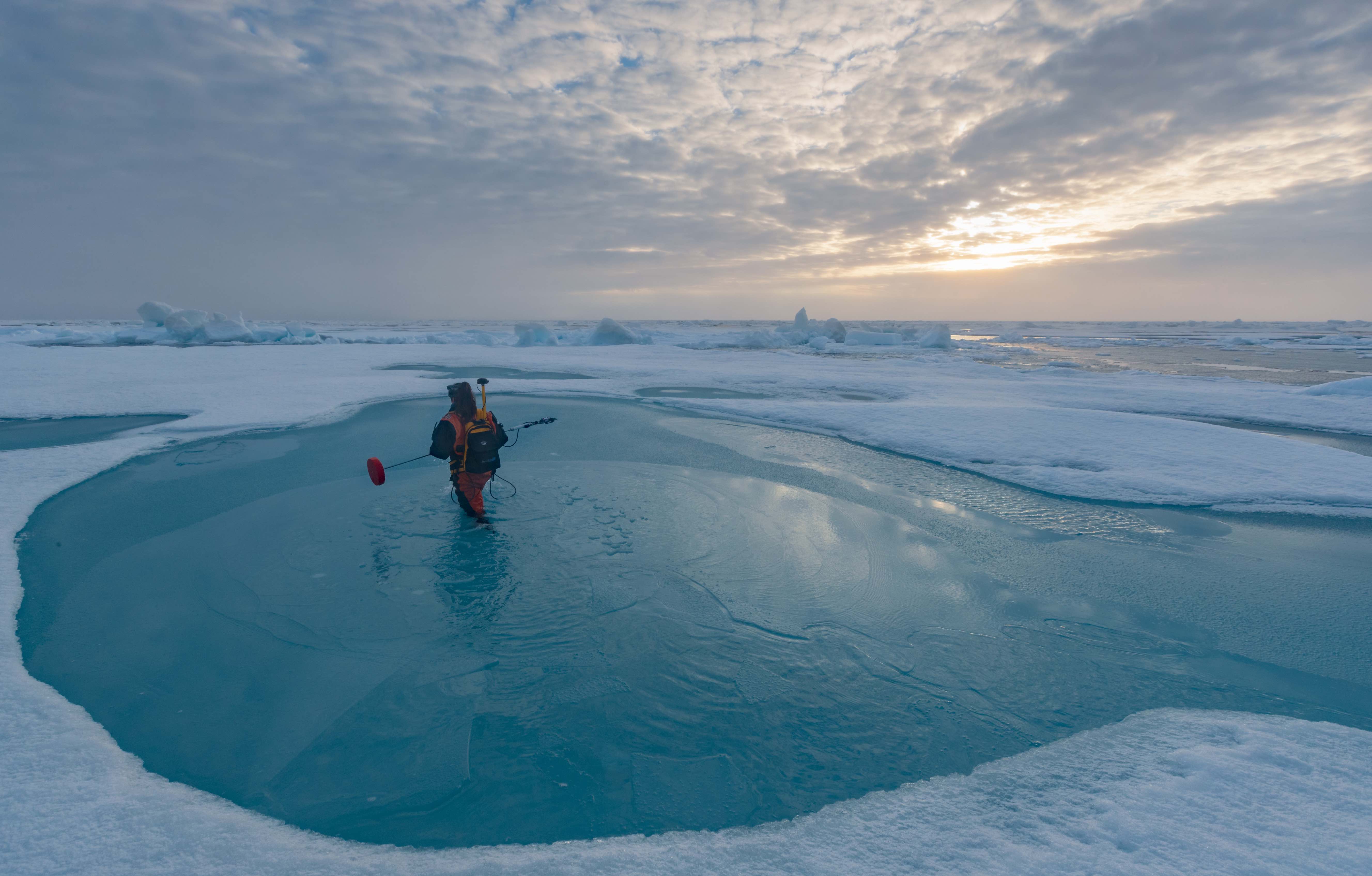 Melinda Webster splashed daily through the clear water of Arctic melt ponds to measure the depth of the water cradled in pockets dotting the polar sea ice. She was a common sight in the white and blue icescape in which the research vessel Polarstern, her home for 126 days last year, had been deliberately left to freeze in place.