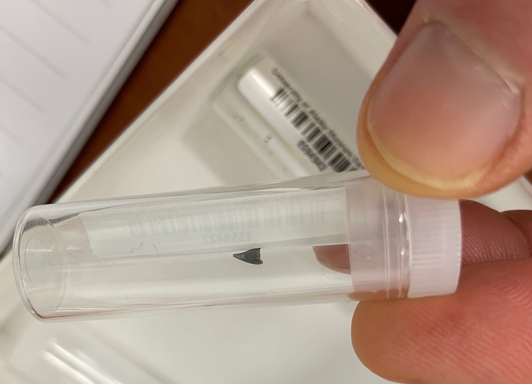 This tiny bird tooth — 73 million years old — was found in the Colville River's bluffs. Lauren Keller carried this sample to her presentation at the University of Alaska Fairbanks.