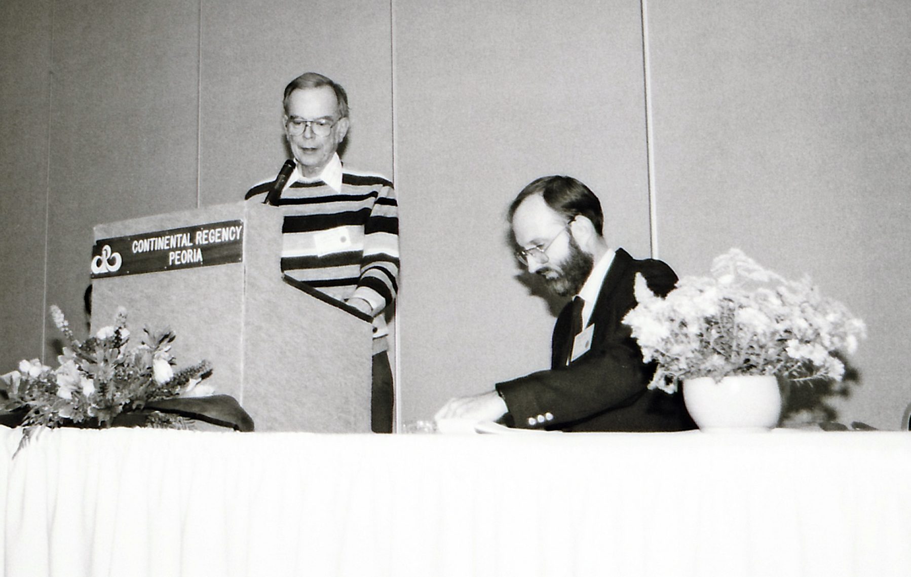 Glenn Juday, right, attends an event with George B. Fell in 1987, when the Natural Areas Association named its highest award for the latter.