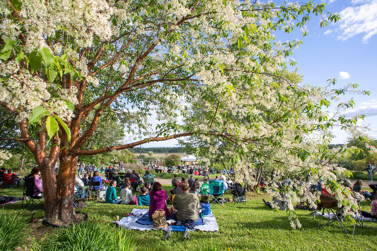 Concertgoers enjoy the music of O Tallulah during Music in the Garden at the Georgeson Botanical Garden in June 2022.