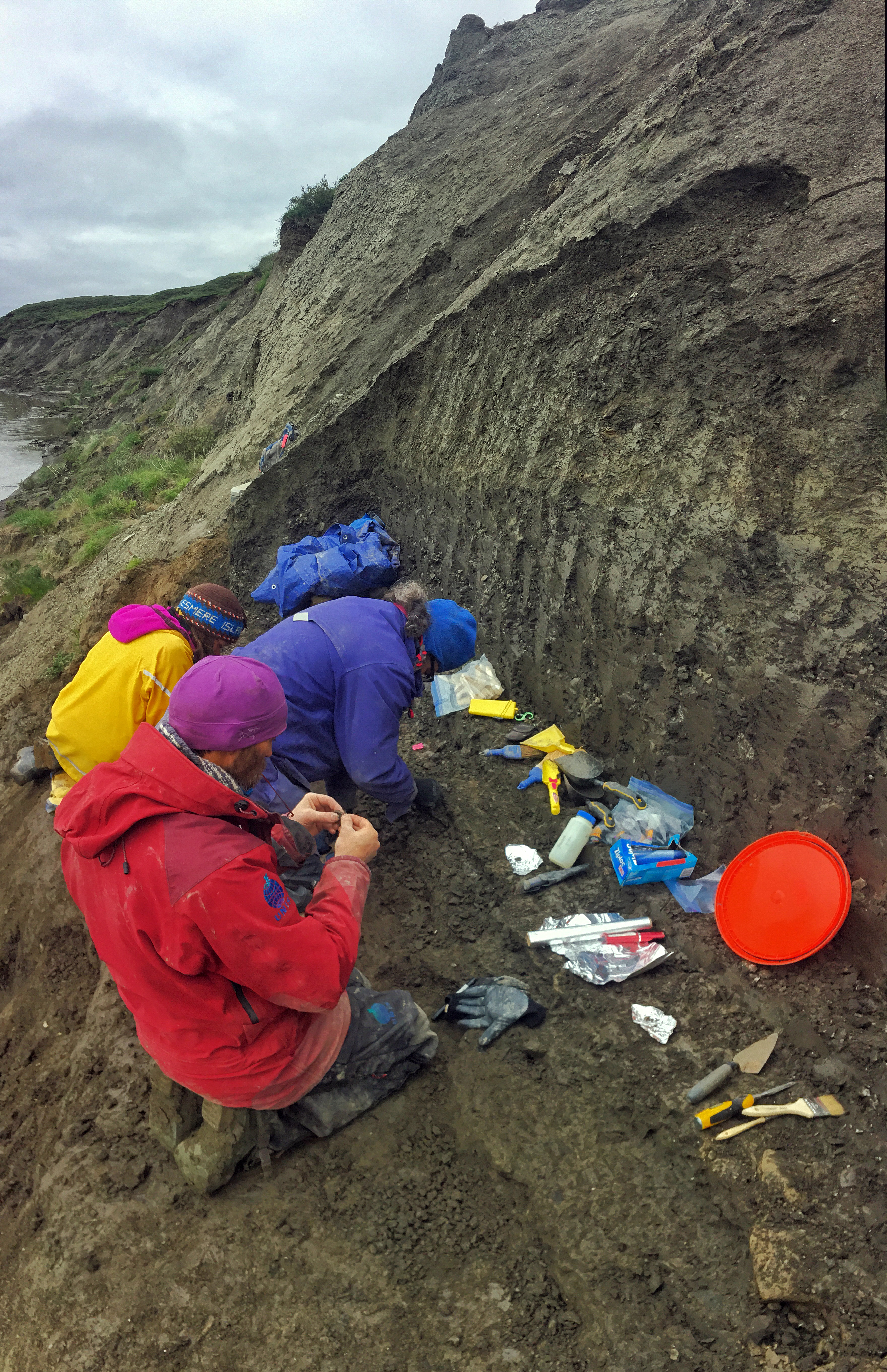 Scientists excavate at the site on the Colville River where many of the fish fossils were found.