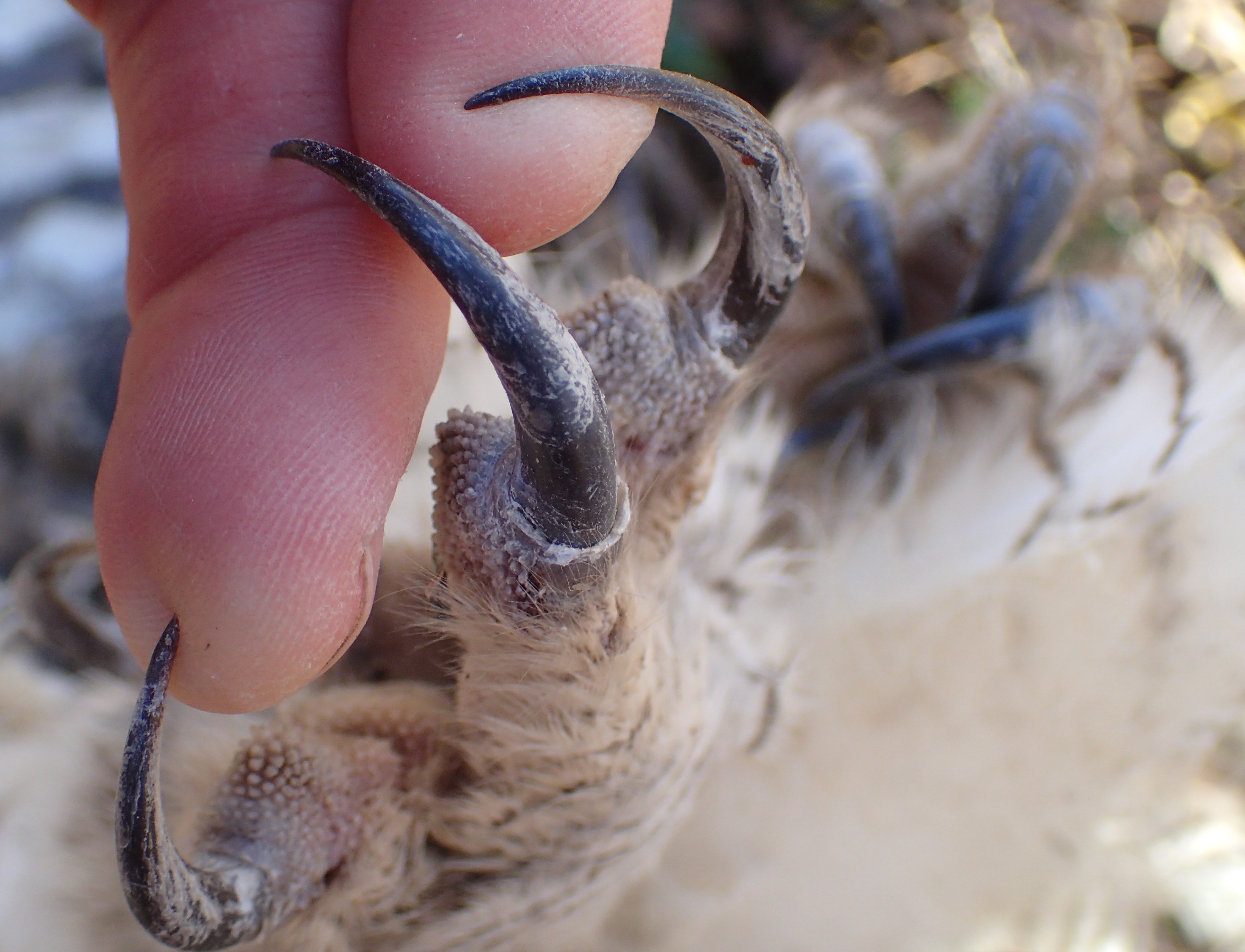 The talons of a great horned owl — this one killed by a car on the Steese Highway — have more crushing power than a human hand.