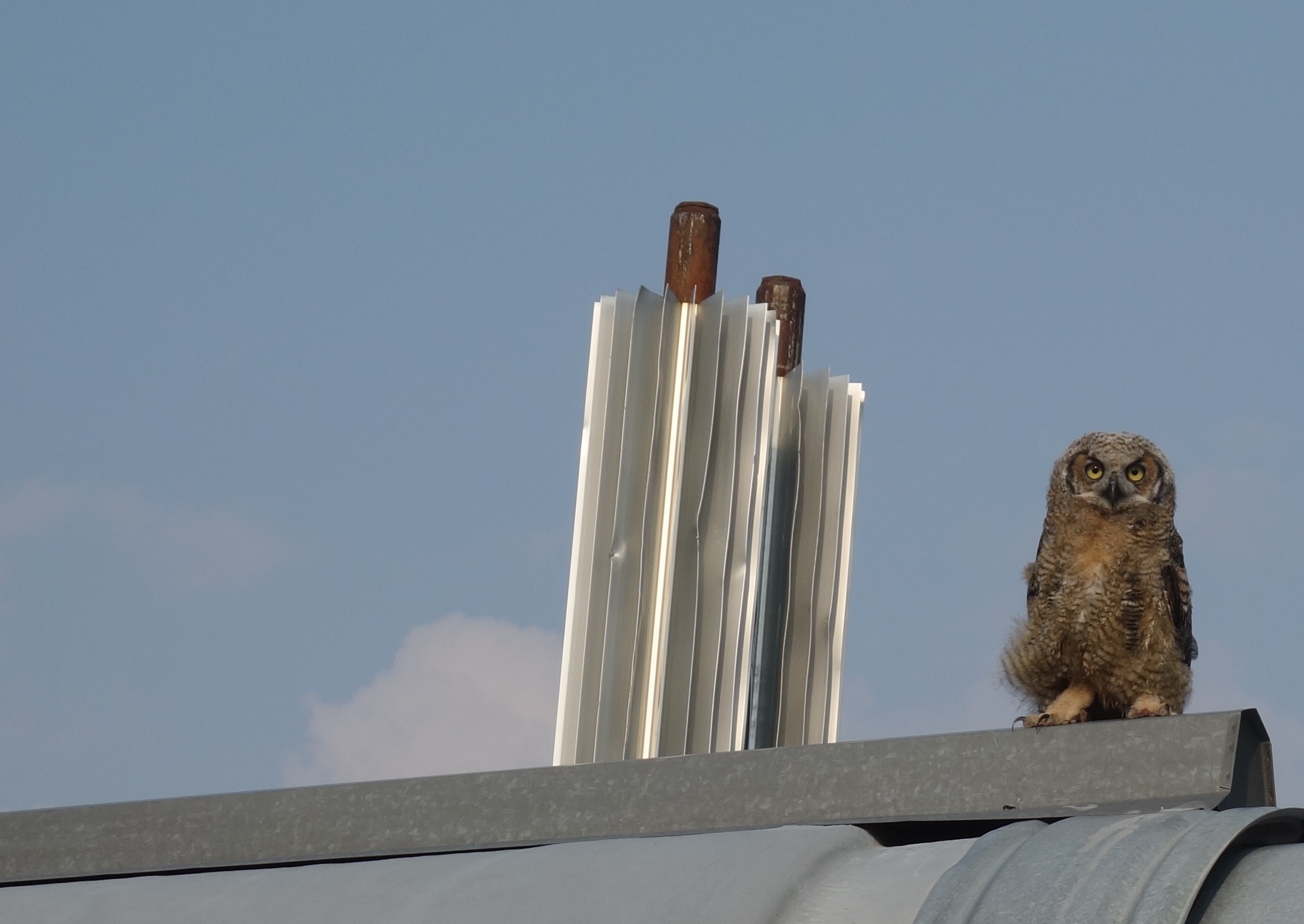 One reason great horned owls may range so far is that they will eat anything they can grab. A few years ago, a teenage neighbor of ours shoved a great horned owl off his 7-pound dog in the driveway. The dog recovered with just a puncture wound to its neck.