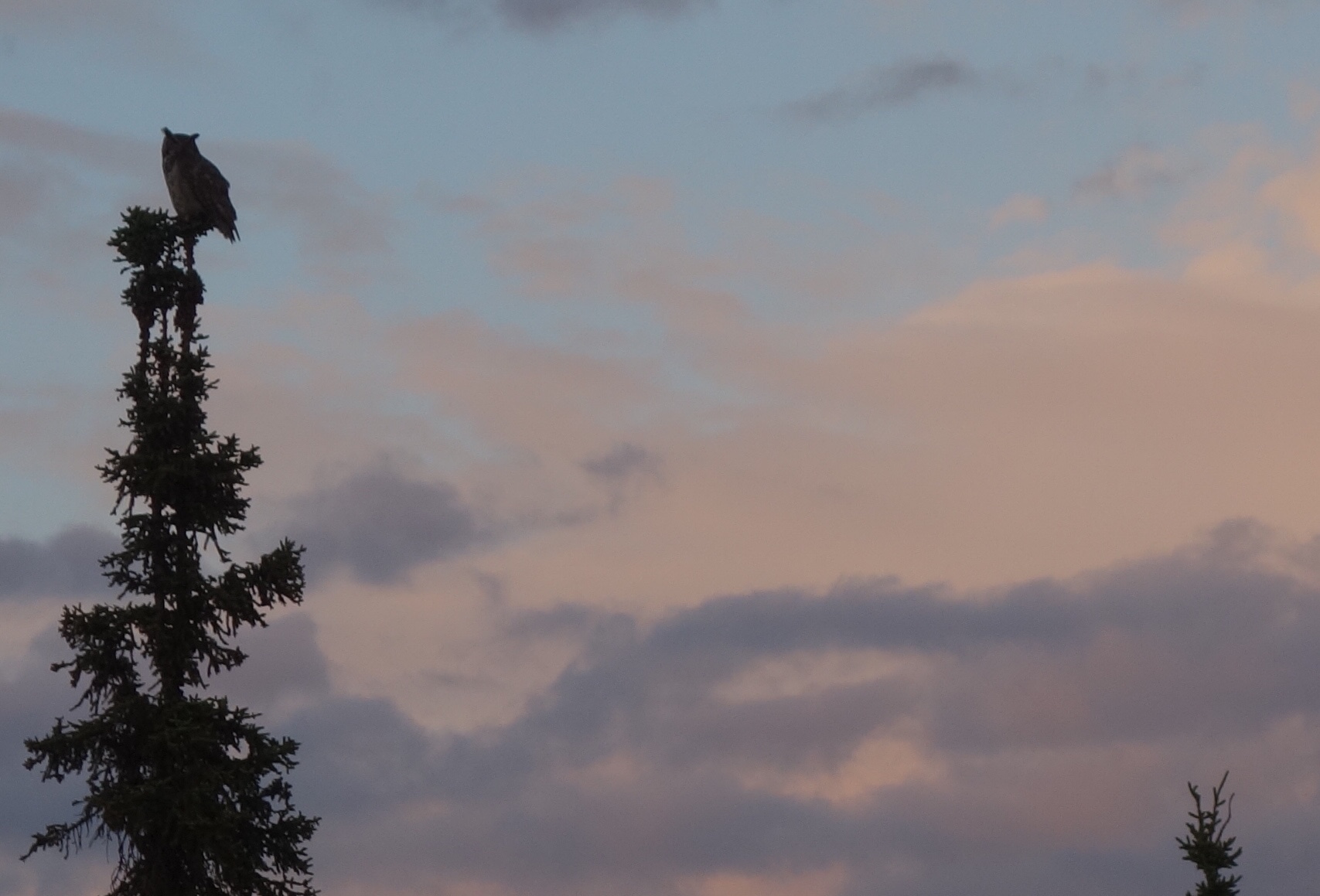 Madison McConnell, as a University of Alaska Fairbanks graduate student, conducted one of the few studies of great horned owls in Alaska on the northern edge of their range near Wiseman. She wrote in her 2019 master’s thesis that the reproductive success of great horned owls was directly proportional to the amount of snowshoe hares in their diets. She also detected 17 other types of prey, including dragonflies, beetles, small fish and frogs.
