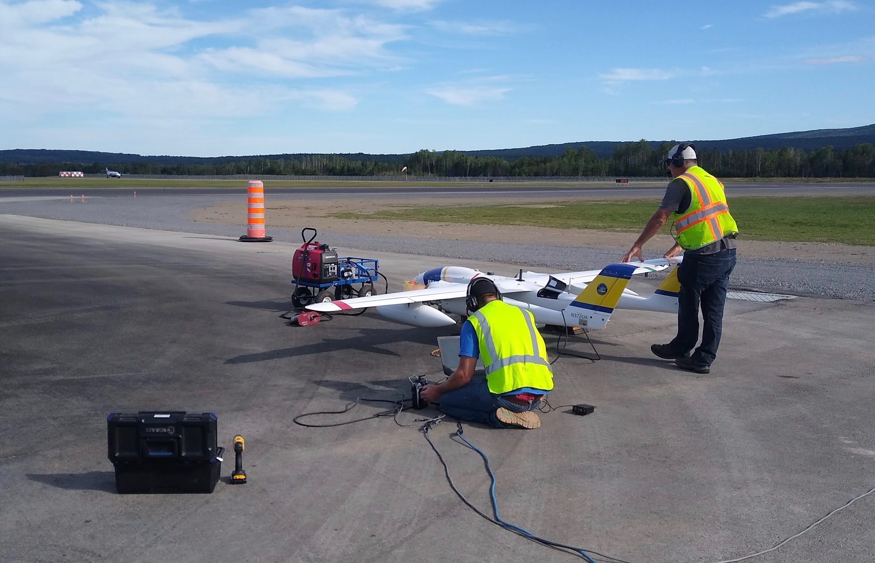 The centerpiece of the ACUASI mission is the SeaHunter aircraft, a twin-engine, 300-pound fixed-wing aircraft with a 16-foot wingspan. It carries enough fuel to fly for 10 hours.