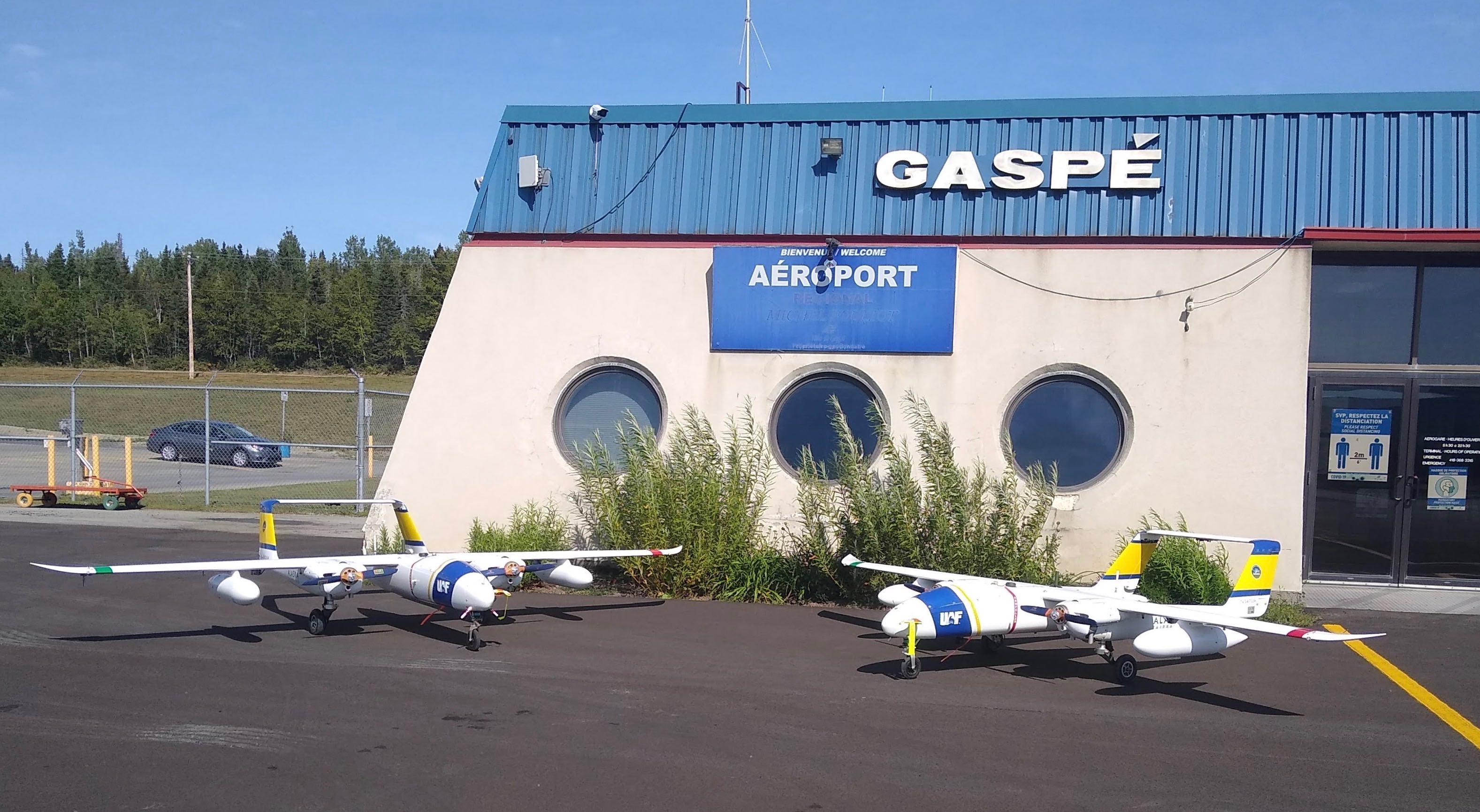 ACUASI sends its two SeaHunter aircraft to Canada, though only one flies during the whale mission. The two aircraft are shown at the Gaspé, Quebec, airport in 2020.