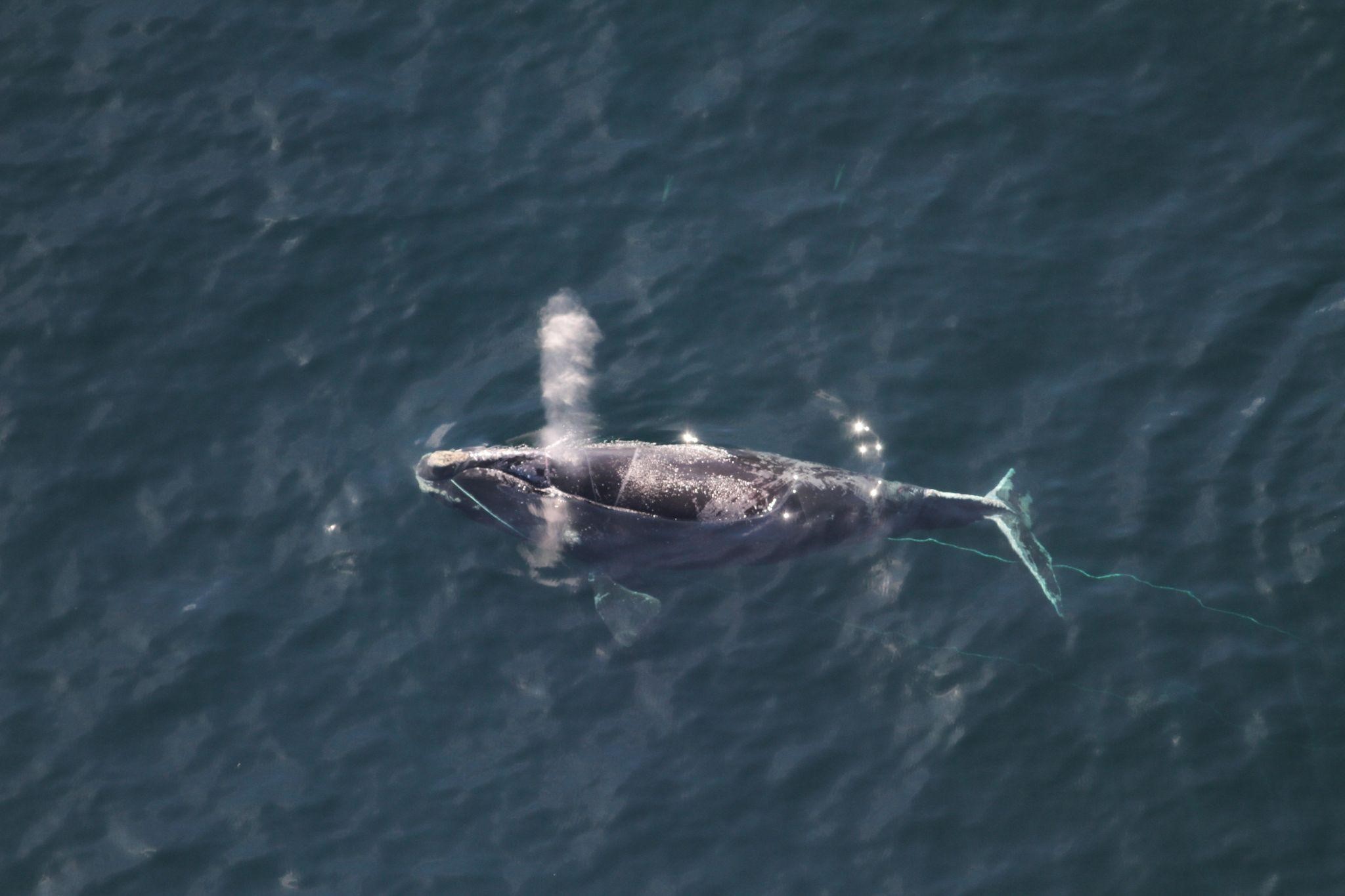 A NOAA research survey sighted North Atlantic right whale No. 3823, known as Sundog, off the coast of Quebec, Canada on May 19, 2022, with a mouth entanglement.