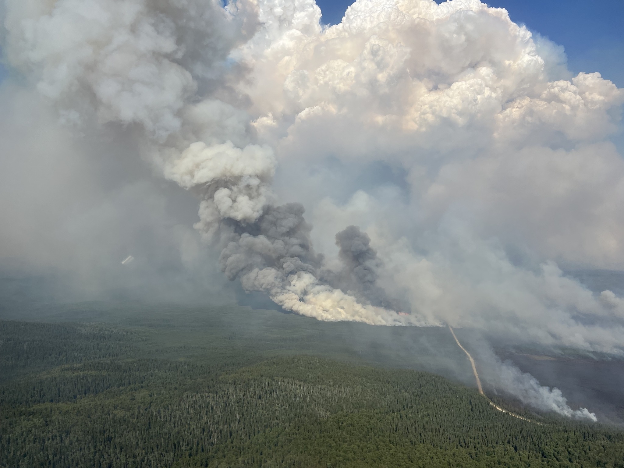 The Lost Horse Creek Fire smoke column rises north of Fairbanks in early August 2023.