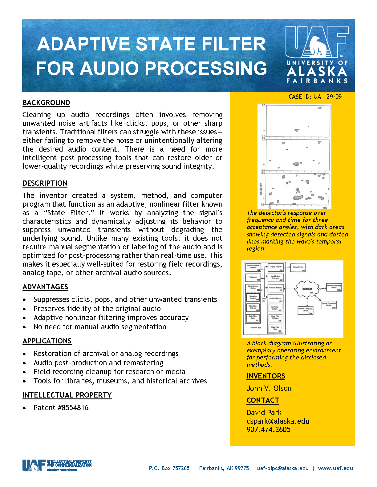 This patented technology is a post-processing audio filter that adaptively removes unwanted transients like clicks and pops while preserving the integrity of the original recording. Its nonlinear, signal-aware design makes it especially effective for restoring archival or field-recorded audio without manual segmentation.