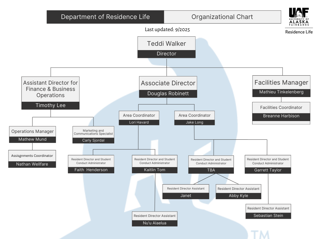 Residence Life supports the academic mission of the University of Alaska Fairbanks by providing living and learning communities that enhance student success. Through effective asset management, we offer a high quality of service at reasonable cost. We provide safe, clean, contemporary and well-maintained facilities that meet the needs of our residents and guests.