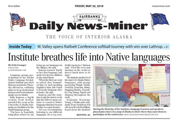 Editorial in the May 29 online edition of the Fairbanks Daily News-Miner lauded the value of ANLRI: “Since Alaska Native Languages Preservation and Advisory Council released a grim report about the future of Alaska Native languages, this (Alaska Native Language Revitalization Institute) was the most significant and proactive step taken toward preserving these languages.”