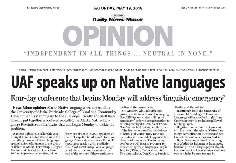 Read UAF addresses 'Native linguistic emergency' (May 19, 2018 link) or download the PDF.