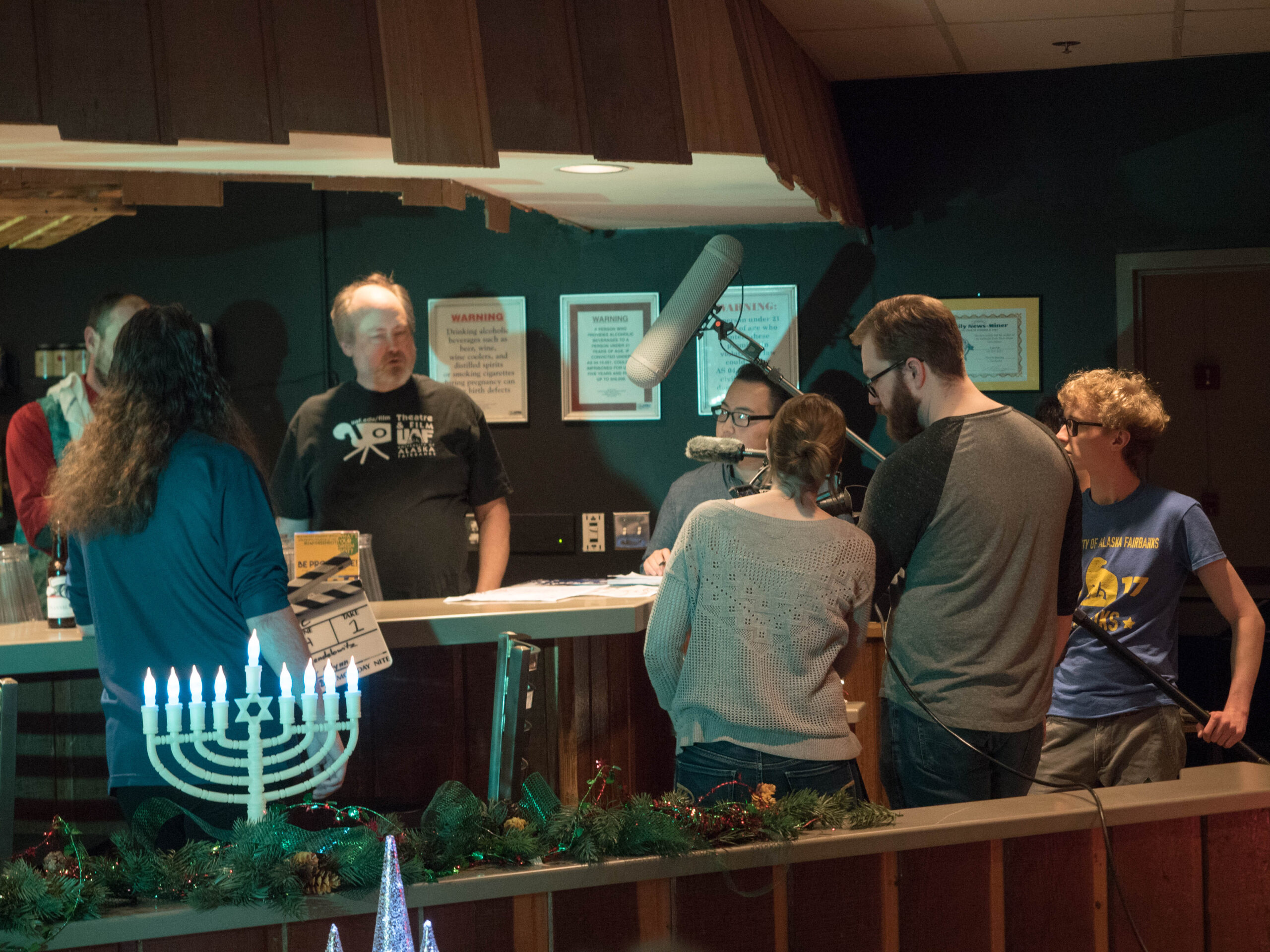 "A Night for Conversation" crew working on scene 7, The Pub.